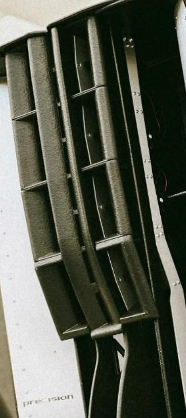 Unique, optimally, genuinely, triaxially horn loaded system with acoustic asymmetric power dispersion. Designed as a complete system for medium sized events – 18 drivers, all integrated in one, just lift – and – play. Six of the fastest 15” mid-bass drivers combine in a perfect 60Hz exponential horn. Inside, four very special 8” midrange drivers form a coaxial asymmetrical power dispersion horn construction with eight 3” high-frequency drivers for the ultimate intelligibility.
